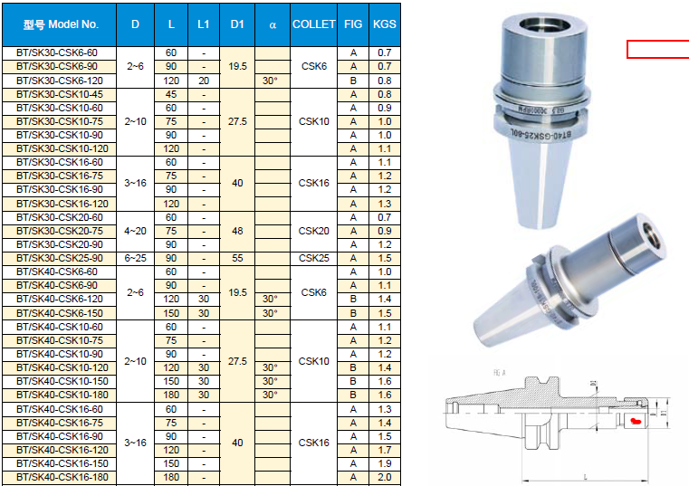 BT/SK(DIN69871A) GSK高轉速精密筒夾刀柄