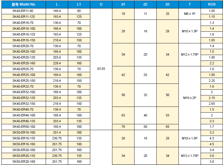 ER 筒夾刀柄DIN 69871A