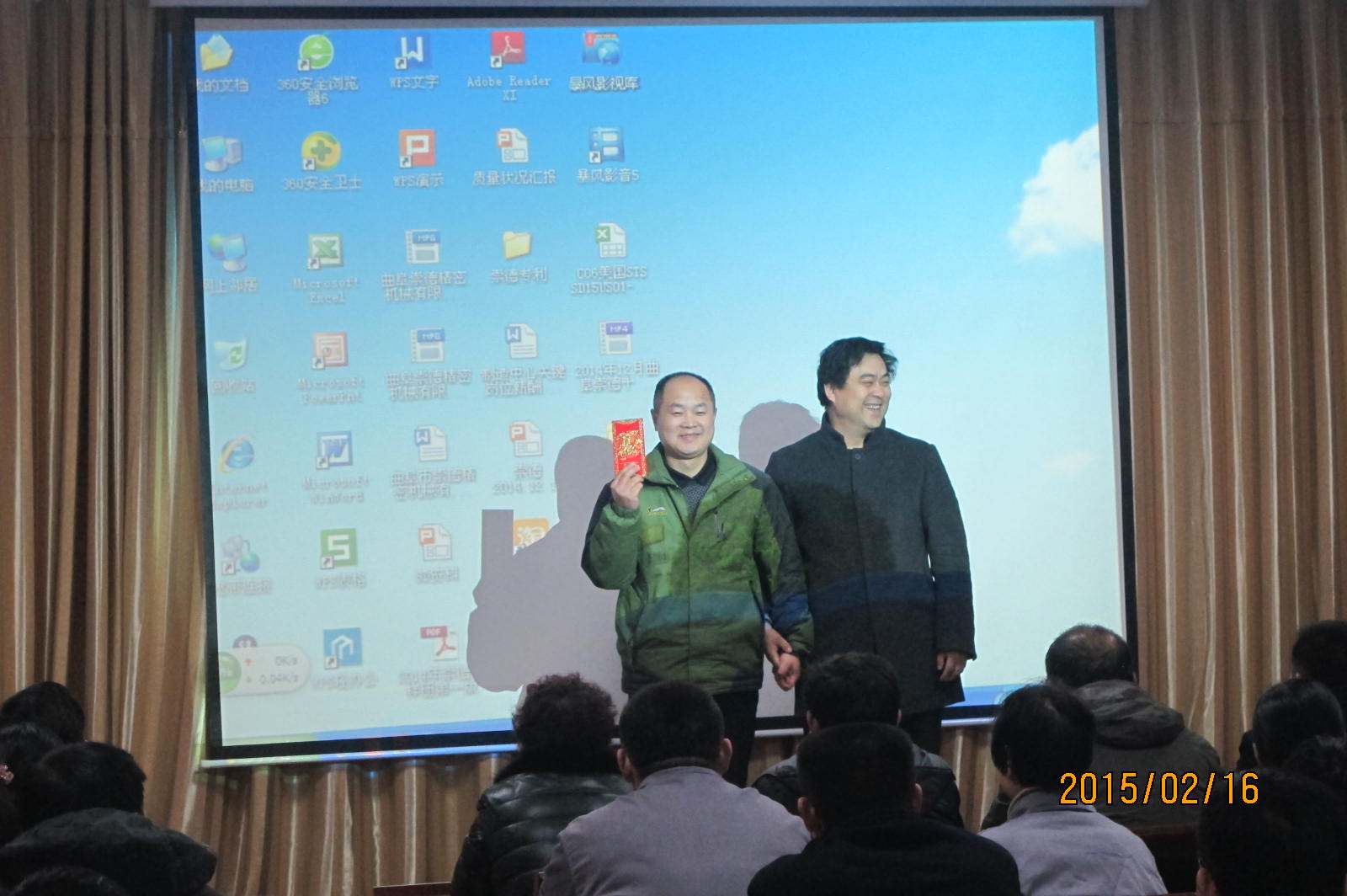 爆竹聲聲辭舊歲,喜氣洋洋迎新春。2015年2月16日上午,曲阜市崇德精密機械有限公司“2014優秀員工表彰大會暨2015動員大會”在公司二樓會議室舉行。總經理孔凡東和副總經理顏旭為獲獎員工頒發獎勵。總經理孔凡東向全體員工分享了公司2015年的發展規劃,勉勵全體員工再接再厲,在新的一年里做出更大貢獻,為實現公司的發展目標,打造民族品牌產品而努力奮斗。