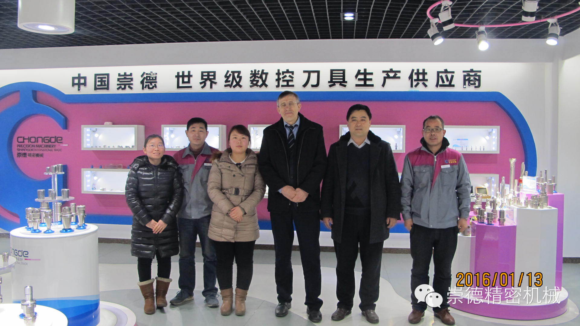 1.13日上午十點,俄羅斯客戶應約抵達崇德。總經理帶領崇德高管熱情迎接,還沒等緩解一路的車馬勞頓,我們這位外國友人就迫不及待的想要參觀一下崇德公司。他說他想認真看看崇德產品,在意大利展會上他對我們的產品非常滿意。